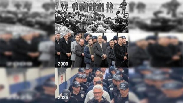 Kürt siyasetçilere dönük “KCK” operasyonları sırasında ortaya çıkan görüntüler ve 12 Eylül yargılamalarından fotoğrafları paylaşarak paralellik kuran Bakırhan, şunları yazdı: