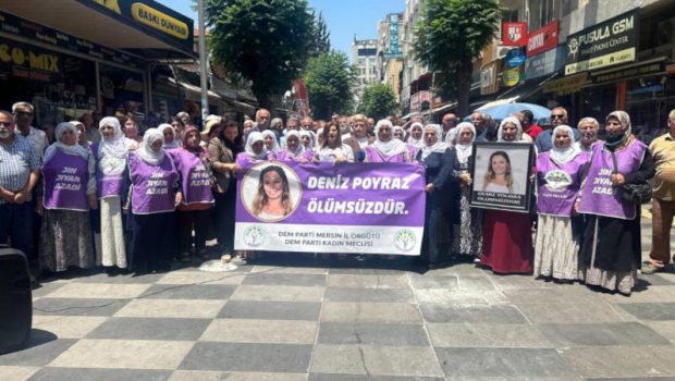 Halkların Demokratik Partisi (HDP) İzmir İl Örgütü’ne 17 Haziran 2021’de gerçekleştirilen saldırıda katledilen Deniz Poyraz, ölümünün 4’üncü yılında Mersin’de düzenlenen açıklama ile anıldı. Halkların Eşitlik ve Demokrasi Partisi (DEM Parti) İl Örgütü tarafından parti binası önünde yapılan açıklamaya DEM Parti Mersin Milletvekili Perihan Koca, Mersin Barış Anneleri Meclisi, Mersin Emek ve Demokrasi Platformu bileşenleri ve çok sayıda kişi katıldı. “Deniz Poyraz ölümsüzdür” pankartının açıldığı açıklamada, “Jin, jiyan, azadî”, “Deniz Poyraz ölümsüzdür” sloganları atıldı.