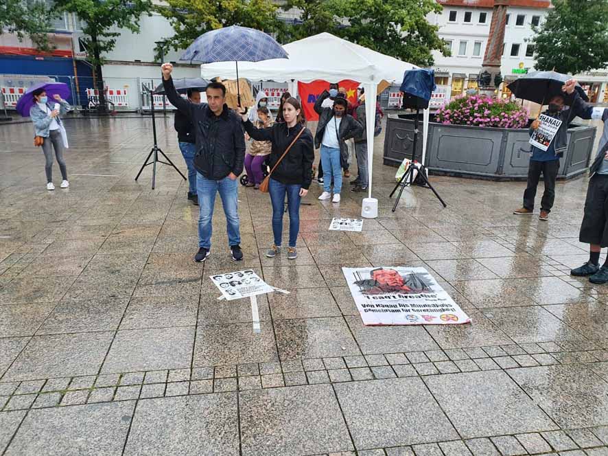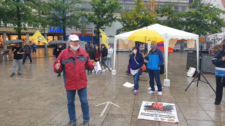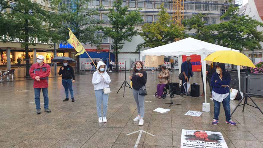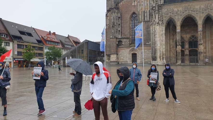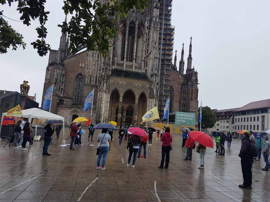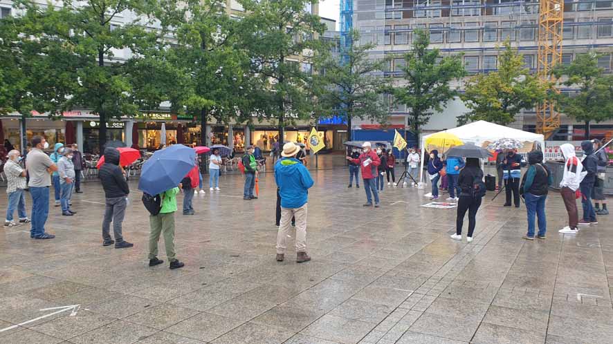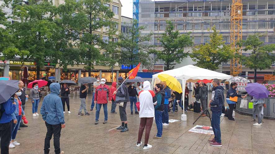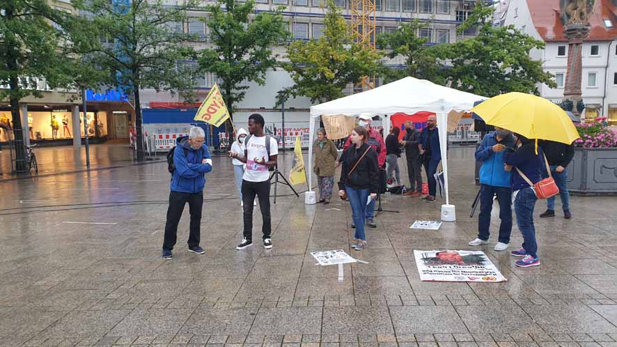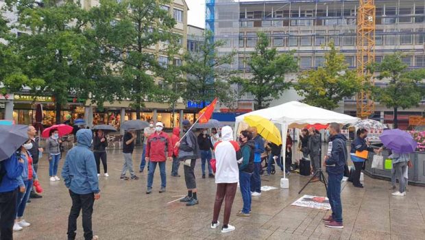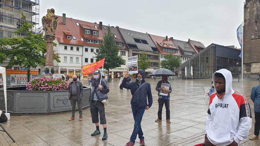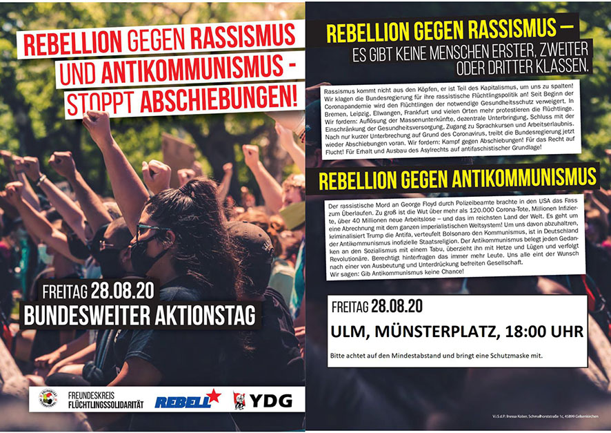 Ulm’da Freundeskreis Flüchtlingssolidarität (Mültecilerle Dayanışma Dostluk Grubu), MLPD’nin Gençlik Örgütü REBELL ve Yeni Demokratik Gençlik (YDG) tarafından “Irkçılığa, antikomünizme ve mültecilerin yurt dışı edilmelerine karşı isyan” mottosuyla yapılan miting çağrısına MLPD, DKP, AGİF, ADHF, ATİF, Halk Cephesi, KON-MED gibi kurumlar da destek verdi.