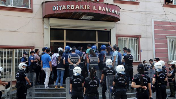 HDP Diyarbakır İl Örgütü, HDP Hakkari Milletvekili Leyla Güven ve Diyarbakır Milletvekili Musa Farisoğulları ile CHP İstanbul Milletvekili Enis Berberoğlu’nun milletvekilliğinin düşürülmesini parti binası önünde protesto etti. HDP Diyarbakır İl Eş Başkanı Hülya Alökmen Uyanık’ın yaptığı açıklama sonrası, polis bina girişinde bulunan partililere saldırdı.