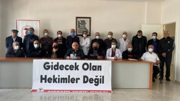 Mersin Tabip Odası ve Sağlık ve Sosyal Hizmet Emekçileri Sendikası (SES) Mersin Şubesi, ortak açıklama yaptı. Mersin Tabip Odası’nda açıklama yapan hekimler, hiçbir yere gitmeyeceklerinin mesajını verdi. Hekimler adına konuşan Tabip Odası Başkanı Mehmet Antmen, “Öncelikle belirtmek isteriz ki; Cumhurbaşkanı’nın bu sözleri başından sonuna kadar yönetememe krizinin göstergesidir” dedi.