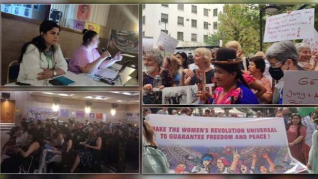 Öte yandan bir grup kadın, Filistinli, Kürt, Êzidî ve Süryani kadınlara yönelik ihlalleri kınamak amacıyla konferansın oturum aralarında dayanışma standı açtı. Uluslararası kamuoyuna ihlalleri durdurma çağrısında bulunuldu. Kadınlar, Filistin ve Kürtlerin kurtuluşu ve tutsak kadınların özgürlüğü için sloganlar attı. (ANF)