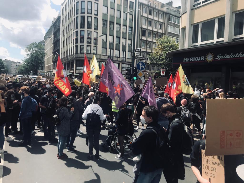 Düsseldorf Hbf önünden 14.00’de başlayan eylemde yaklaşık 20 bin kişi Eyalet Parlamentosu önüne “Black Lives Matter” sloganlarıyla yürüdü.