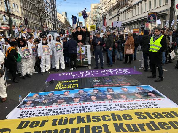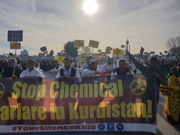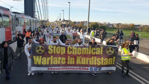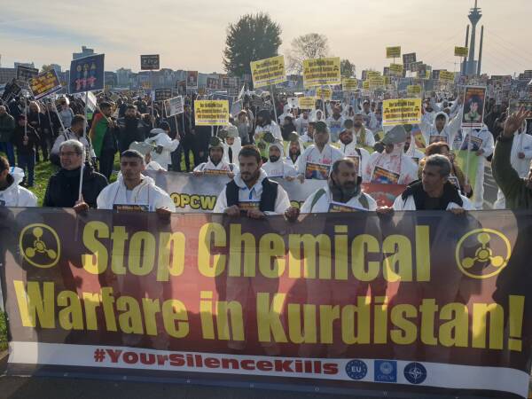 Türk devletinin Güney Kürdistan’da gerilla alanlarında kimyasal silah kullanımına karşı Avrupa’daki Kürdistani kurum ve partiler ile Avrupa Demokratik Güç Birliği (ADGB) tarafından Almanya’nın Düsseldorf kentinde organize edilen yürüyüş bir dakikalık saygı duruşu ardından iki koldan başladı. Kimyasal Silahların Yasaklanması Örgütü (OPCW), Birleşmiş Milletler (BM), ve NATO ve taraf devletlerin sessizliği on binlerin katılımı ile DGB Haus (Zap) ve Rheinwiesen (Avaşin) parkında başlayan yürüyüş ile protesto ediliyor. Yürüyüş Rhein Parkı’nda son bulacak.