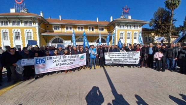 KESK Adana Şubeler Platformu, Adana Gar önünde yaptıkları açıklamayla TÜİK’e tepki gösterdi. Dönem Sözcüsü Tonguç Özkan, “Cumhurbaşkanı, büyük bir müjde olarak kamu emekçileri ve emeklilerin 2023 Ocak maaşlarının yüzde 25 artırılacağını açıklamış, yandaş konfederasyon başkanı da açıklanan bu zammı hiç yüzü kızarmadan avuçları patlayana kadar alkışlamıştır. Açlık sınırının 8.130 TL, yoksulluk sınırının ise 26.485 TL olduğu bir ülkede, iktidarın Ali Cengiz oyunları ile açıkladığı bu sahte enflasyon rakamlarına kimse inanmamızı beklemesin” dedi.