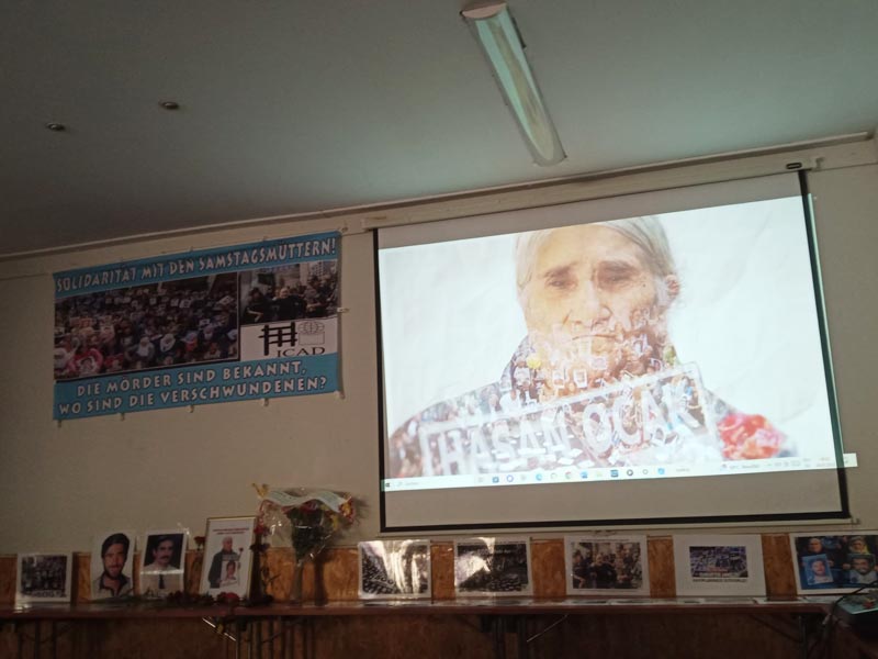 ICAD adına Baki Selçuk Türkçe ve Almanca yaptığı konuşmada, gözaltında kaybetme saldırısının sadece fiziki değil, politik bir saldırı olduğunu ve Hitler faşizminden Latin Amerika’ya, Asya’dan Avrupa’ya kadar birçok ülkede uygulandığına değinerek, Türkiye’de gözaltında kayıp saldırısının tarihçesi ve aynı zamanda bu saldırıya karşı geliştirilen mücadeleyi anlattı. Hasan Ocak kampanyası, ardından Cumartesi Annelerinin süreklileşen eylemleri ve 17-19 Mayıs 1996’da yapılan Uluslararası Gözaltında Kayıplar Kurultayı ile faşist Türk devletinin bu saldırısının teşhir edildiğini ve geri püskürtüldüğünü, ancak binlerce kayıbın akıbetinin ortaya çıkarılması, sorumluların hesap vermesi için mücadelenin sürdüğünü söyledi.