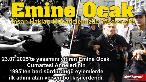 İnsan Hakları Published on Temmuz 23rd, 2025 0 Emine Ocak, İnsan Hakları Mücadelemizde Yaşayacak! 23.07.2025 yaşamını yitiren Emine Ocak, Cumartesi Anneleri’nin 1995’ten beri sürdürdüğü eylemlerde ilk adımı atan sembol isimlerdendi. Ähnliche Beiträge About the Author AD 1 Related Posts İstanbul’da 12 kişi tutuklandı → Hüda Kaya 18 aylık cezasını çekmek üzere 10 gün içinde teslim olmaya çağrıldı → Devrimci tutsak Elif Vural Yaş’ın tahliyesi 3. kez ertelendi → Sosyalistlere 69 yıl ceza: “Faşizmin saldırısı sürüyor” → Comments are closed.