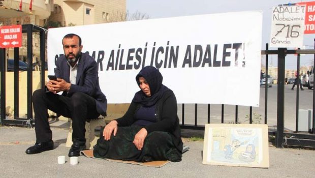 Mezopotamya Ajansı’nda yer alan habere göre, Riha’nın Pirsûs (Suruç) ilçesinde, 14 Haziran 2018 tarihinde AKP Milletvekili İbrahim Halil Yıldız’ın koruma ve yakınları tarafından eşi ve iki oğlu katledilen Emine Şenyaşar ve saldırılardan yaralı kurtulan oğlu Ferit Şenyaşar’ın 9 Mart 2021’de Urfa Adliyesi önünde başlattığı Adalet Nöbeti 716’üncü gününde devam diyor.