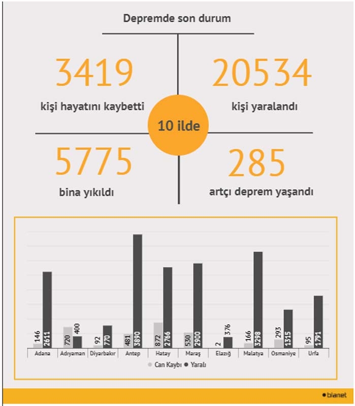 Antep‘te 481 kişi hayatını kaybetti, 3890 kişi yaralı.