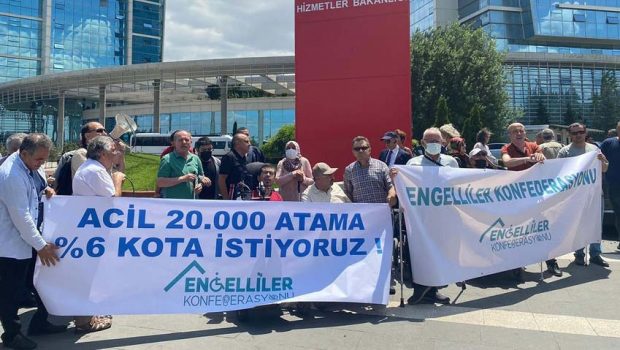 Engelliler Konfederasyonu, Engelli Kamu Personeli Seçme Sınavı’ndan (EKPSS), yeterli puan almalarına rağmen atanamadıklarını söyleyerek 20 bin atama, yüzde 6 kota talep ettiler.