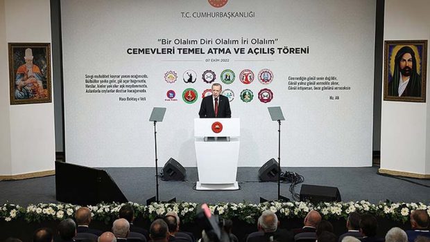 Cumhurbaşkanı Erdoğan, “Kültür ve Turizm Bakanlığımız bünyesinde Alevi Bektaşi Kültür ve Cemevi Başkanlığı, cemevlerinin tamamının yönetimini yürütecek” dedi.