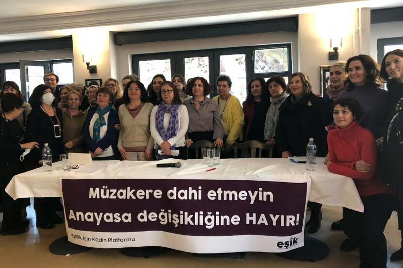 Eşitlik İçin Kadın Platformu, iktidarın sunduğu iki maddelik Anayasa değişikliği teklifinin, kadınların hak ve özgürlük alanlarını ciddi şekilde daralttığını belirterek ‘hayır’ denilmesini istedi.