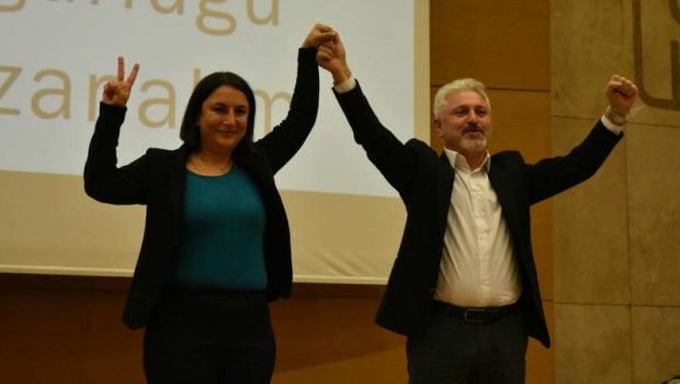 Özlem Gümüştaş ve Şahin Tümüklü’nün çok zor bir dönemde kararlılıkla bir mücadele çizgisini sürdürdüğünü belirterek onlara teşekkür eden Aktaş, “Tarihimizden aldığımız güçle, kadın devrimi programımıza yaslanarak yeni dönemi yükseltmeye adayız. Gelenekten geleceğe, Atılımı hep beraber, sizin de gücünüzle yükseltmeye adayız” dedi.
