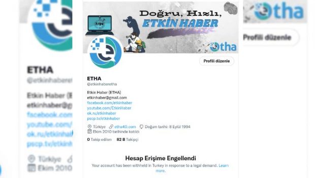 ETHA’nın haberlerini paylaştığı @etkinhaberetha ETHA’ya bildirilmeden mahkeme kararıyla engellendi.