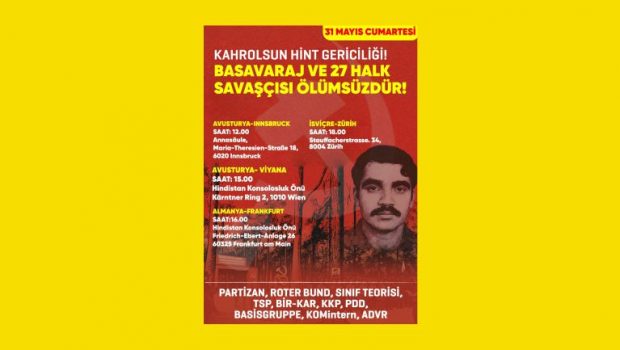 Bizler, Hint gerici faşist devletinin katliamlarını protesto etmek, Hindistan’da süren Yeni Demokratik Devrim ve Sosyalizm mücadelesi ile dayanışmak ve Halk savaşında ölümsüzleşen başta HKP(Maoist) sekreteri şahsında halk savaşçılarını anmak için Avrupa’nın birçok şehrinde eylemler gerçekleştireceğiz.