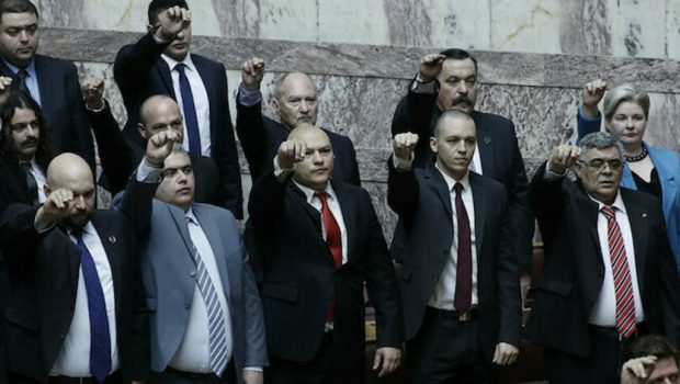 Yunanistan’da geçtiğimiz hafta suç örgütü olarak ilan edilen faşist Altın Şafak partisinin lideri Nikos Mihaloliakos ve yönetici kadrosu ‘suç örgütü yönetmekten’ 13 yıl hapis cezasına çarptırıldı. Mihaloliakos’un yanı sıra lias Kasidiaris, Yiannis Lagos, Giorgos Germenis, Ilias Panagiotaros, Panagiotis Iliopoulos ve Nikos Papas’a da 13’er yıl hapis cezası verildi.