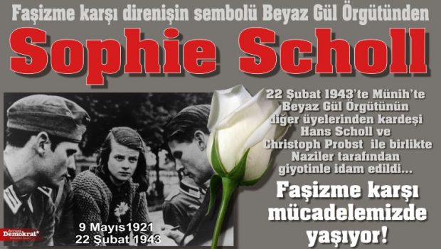 Faşizme karşı direnişin sembolü Weiße Rose (Beyaz Gül) Örgütünden Sophie Scholl, 22 Şubat 1943’te Münih’te Beyaz Gül Örgütünün diğer üyelerinden kardeşi Hans Scholl ve Christoph Probst ile birlikte Naziler tarafından giyotinle idam edildi…
