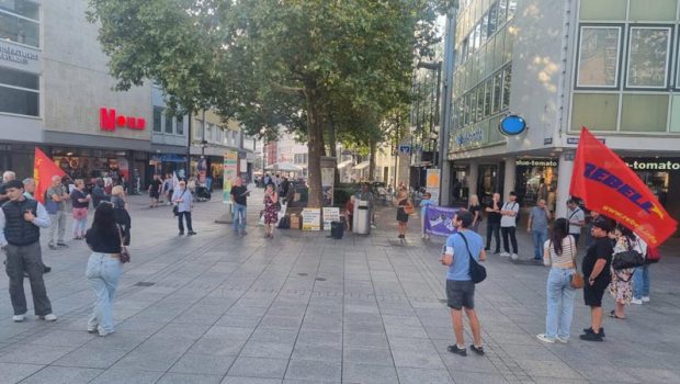 Güney Almanya’nın Ulm şehrinde, “-Silahlanmayı durdur, -Putin ve NATO’yu durdurun, -Gazze’deki soykırımı durdurun, Her türlü emperyalist saldırıya karşı çıkalım, AfD’yi yasaklayın, -İşçiler saflara, -Gerçek sosyalizm” istemleriyle düzenlenen etkinlikte, Internationalistisches Bündnis (Enternasyonal Birlik) ve MLPD adına konuşmalar yapıldı. Konuşmaların dikkatle dinlenmesi gözlenirken, döviz ve savaş karşıtı pankartlar da ilgi çekti.