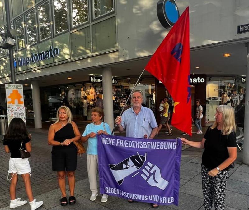 Şehir halkının ilgisini çeken etkinlikte, Ukrayna savaşı, Alman devletinin silah ve askeri ihracatı ve hayat pahalılığı ile dünyanın bir çok bölgesinde gerçekleştirilen işgallere yönelik konuşmaları ve atılan sloganlarla dikkat çekildi. Eylemde çok sayıda bildiri dağıtılırken, enformasyon çadırında geniş bilgilendirmede bulunuldu. Taşınan dövizlerde de savaşa karşı barış çağrısı yapıldı. “Yeni barış Hareketi – Faşizme ve Savaşa Karşı“ yazılı pankart, savaşa ve silahlanmaya karşı çok sayıda döviz dikkat çekti.