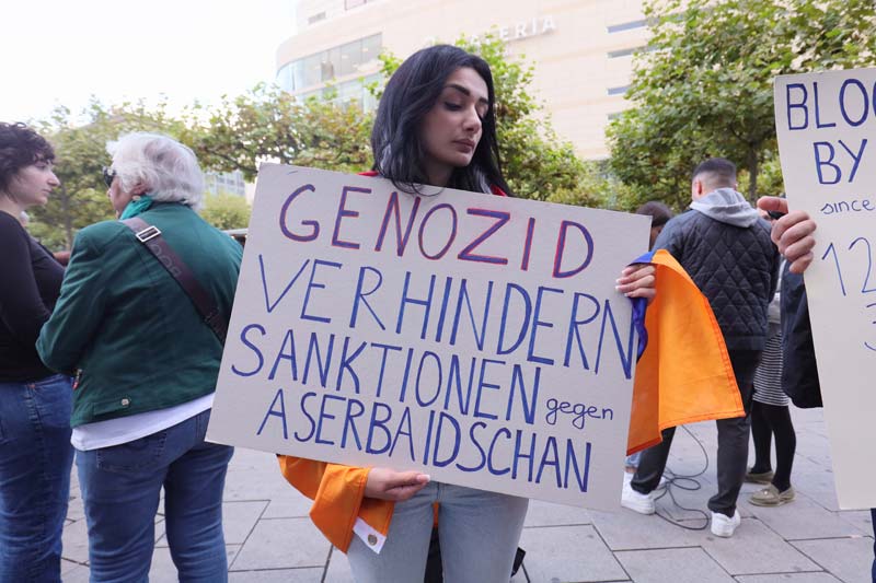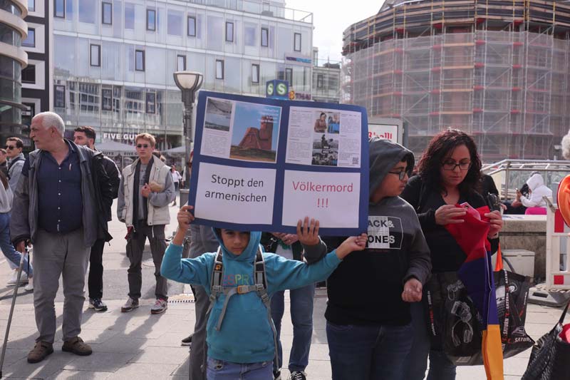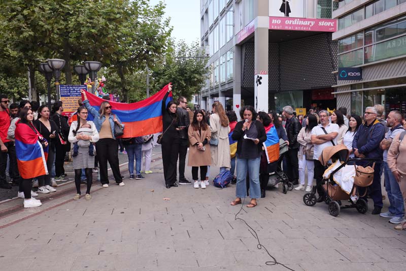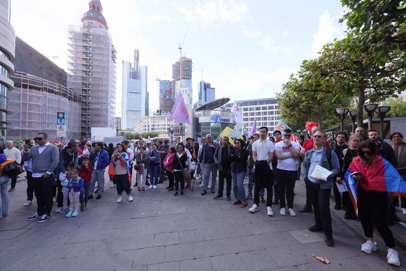 23 Eylül 2023 Günü , Frankfurt Soykırım Karşıtları Derneği ve Deutsch-Armenische Juristenvereinigung e.V. kurumlarının çağrısıyla Frankfurt Zeil 129 adresinde bir araya gelen kitle Azerbaycan Devleti’nin işgal ve katliamlarını kınadı.