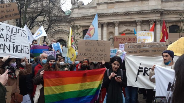 Fransa’da Sorbon Üniversiesi önünde Boğaziçi Üniversitesi Mezunlar Derneği, Boğaziçi Üniversitesi İçin Mezunlar Girişimi, Boğaziçi Üniversitesi İş İnsanları Derneği, Boğaziçi Üniversitesi Yurtdışı Topluluğu, Boğaziçi Üniversitesi eylemlerine destek açıklaması yaptı.