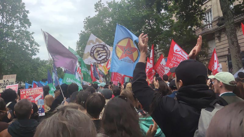 Özellikle gençlerin büyük bir katılım gösterdiği eylemde, Öğrenci birliği, Fage, Unef, genç kadın örgütü ZORA, genç komünist hareket ve genç ekolojistler güçlerini birleştirdi.