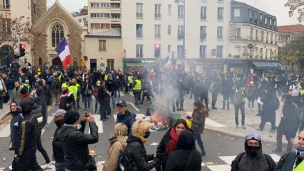 Fransa’da sarı yelekliler, eylemlerinin 3. yılında Cumhurbaşkanı Emmanuel Macron yönetiminin politikalarını protesto etmek için ülke genelinde sokağa çıkarken, başkent Paris’teki eylemde polis ile eylemciler çatıştı.