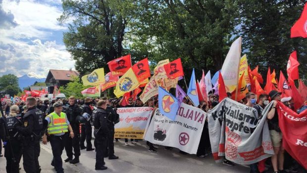 Garmisch-Partenkirchen’de “Stop G7 Elmau” Platformu tarafından 24 ile 28 Haziran arası protesto kampı ve çeşitli eylemler örgütlendi. G7 zirvesinin gerçekleştiği Schloss Elmau’a 10 km uzaklıkta bulunan Garmisch-Partenkirchen’de ilk günden beri birçok anti-emperyalist, anti-faşist ve iklim aktivisti kamp ve eylemlere katılım sağladı.