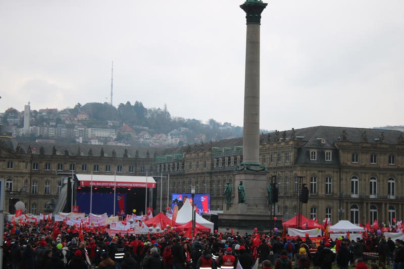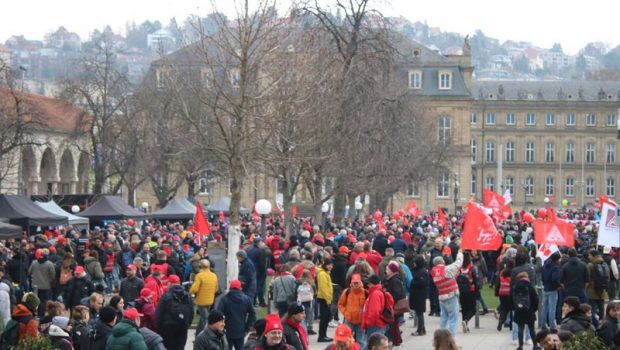 Cumartesi günü Stuttgart’ta binlerce kişi, işlerini korumak ve Baden-Württemberg’de güvenli bir gelecek talebiyle sokaklara çıktı.