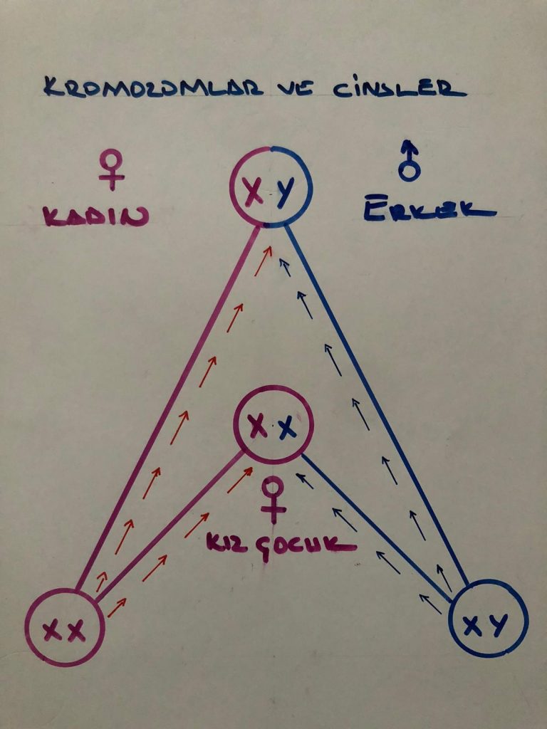 Bu anlamda kadının, doğurduğu çocuğunun her şeyinden sorumlu tutulup, günah keçisi yapılması, Tıp bilim dalına da yapılan inkar ve hakaret demektir. Hatta bazı toplumlarda erkek çocuk doğurmadığı bahanesi ile kadın hala ya baba evine gönderiliyor, yahutta üzerine kuma getiriliyor. Böylelikle kadın kadınla yarıştırılıyor. Halbuki erkek çocuğun olup, olmaması kesinlikle erkek cinsinin kromozomlarıyla belirlenen bir sonuçtur. O yüzden her kesin anlayabileceği şekilde Genetik kimliğimizin belirleyici hücreleri olan ‘’SOY AĞACI’’ diye de tabir edebileceğimiz Kromozomlara değinmek istiyorum. Kendi çizdiğim görünümle de bunu daha kolay anlaşılır hale getirmek istedim.
