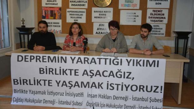 İnsan Hakları Derneği (İHD), Çağdaş Hukukçular Derneği (ÇHD), Özgürlük için Hukukçular Derneği (ÖHD) ve Birlikte Yaşamak İstiyoruz İnisiyatifi, Maraş merkezli depremler sonrası ülkede özellikle Suriyeli mültecilere dönük körüklenen ırkçılık ve ayrımcılığa ilişkin Taksim’de bulunan İHD İstanbul Şubesi’nde basın açıklaması düzenledi.