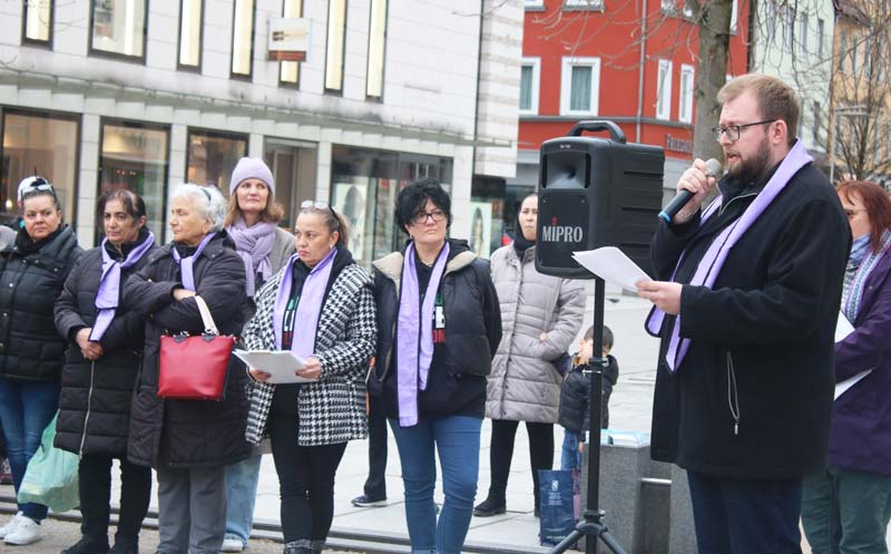 Göppingen’de yağmur yağmasına rağmen kadınlar eylemlerini sürdürmeye devam ettiler.