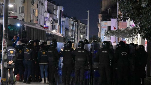 Basın emekçileri darp edilerek ablukanın dışına atılırken, kadınlar polis saldırısına “Yaşasın kadın dayanışması”, “Susmuyoruz, korkmuyoruz, itaat etmiyoruz”, “Geceleri de sokakları da meydanları da terk etmiyoruz” sloganlarıyla yanıt verdi.
