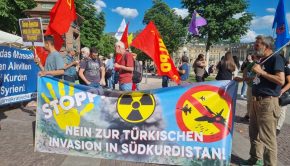 Avrupa Demokratik Güç Birliği (ADGB) bileşenlerinin ortak çağrı ve organizasyonuyla, ‘’Faşist Türk Devleti Kürdistan’dan elini çek’’ başlığı altında miting düzenlendi.