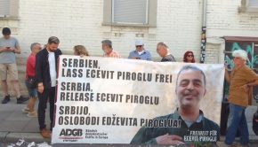Ecevit Piroğlu’na Özgürlük İnisiyatifi yine Stuttgart Sırbistan Konsolosluğu önünde Piroğlu’na Özgürlük istedi. Almanya’nın Stuttgart kentinde yine Sırbistan Konsolosluğu önünde bir