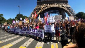 ABD Yüksek Mahkemesi’nin ABD’de federal düzeyde kürtaj hakkını garanti altına alan Roe v. Wade kararını bozmasının ardından Cumartesi günü Paris,