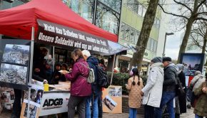ADGB Ulm bileşenleri olarak Ulm şehir merkezinde açılan dayanışma çadırında, 1530 euro toplaranak ve Kürt Kızılay’ı Heyva Sor a Kurdistanê’ye