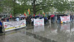 Hannover Demokratik Güç Birliği’nin örgütlediği, KJ ve MLPD ’nin desteklediği, “Kürdistan ve Filistin‘ e Özgürlük, Katil Ordusu NATO’ya Hayır“ mitingi