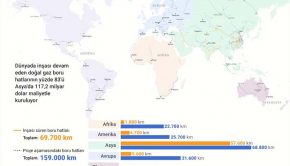 Söz konusu doğal gaz boru hatlarının yüzde 83’ü Asya’da 117,2 milyar dolar maliyetle inşa ediliyor Dünya genelinde inşası devam eden