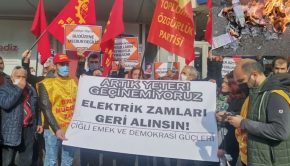 Çiğli Emek ve Demokrasi Güçleri, Gediz Elektrik binası önünde zamları protesto ederek faturaları yaktı. Duvar’da yer alan habere göre, Çiğli
