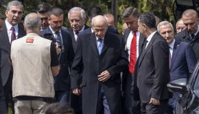 Faşist lider Alpaslan Türkeş’i anmak için düzenlenen törene gecikmeli olarak katılan faşist parti MHP lideri, iki ay sonra ilk kez