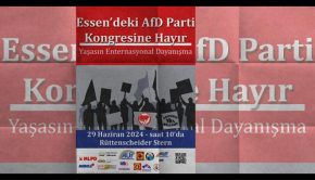 Essen’deki AfD Parti Kongresine Hayır Yaşasın Enternasyonal Dayanışma AfD parti kongresi 28-30 Haziran tarihleri arasında Messe Essen’de gerçekleştirilecek. Kongreye karşı çok çeşitli protestolar düzenlenecektir.