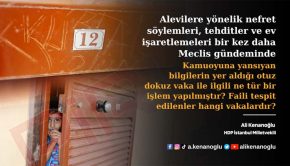 Halkların Demokratik Partisi (HDP) İstanbul Milletvekili Ali Kenanoğlu, Adana’nın Seyhan ilçesinde Alevilerin ikamet ettiği bazı evlerin işaretlenmesini Meclis gündemine taşıdı.