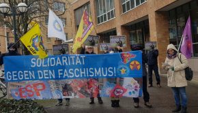 Almanya’nın Stuttgart şehrinde AvEG-Kon’un çağrısıyla AGİF ve SKB üyeleri, Yunanistan devletinin 17 Kasım 2020’de mültecilere yardım ettikleri için tutukladığı Alican