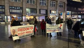 Medya Halkevi önünde çoğunluğunu Alman devrimci- demokrat kesimlerin oluşturduğu mitingle Makbule Kartal’ın tutuklanması protesto edildi. Kürt Halk Meclisi yöneticisi olmak suçlamasıyla,