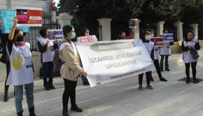 Yaşamak İstiyoruz İnisiyatifi, “İstanbul Sözleşmesi uygulansın” talebiyle toplanan 600 bin imza Meclis’e verildiği sırada eş zamanlı olarak İstanbul ve İzmir’de