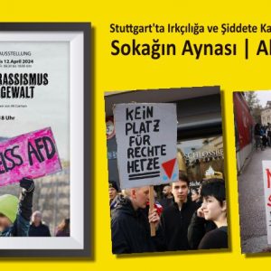 Stuttgart’ta Irkçılığa ve Şiddete Karşı Resim Sergisi: Sokağın Aynası DGB Haus’da ırkçılık ve şiddet konulu ‘’Sokağın Aynası’’ sergisi: Gazeteci-fotorafçı Ali Çarman’ın 30 yıla yayılan fotoğraflarıyla zamana ve gerçeğe bir yolculuk. Sergide Almanya’da ırkçı, neo-nazi saldırganların yaptıkları,... Read More →