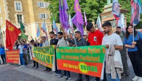Bugün Mannheim’da meydana çıkılarak, Türk devletinin Kuzey ve Doğu Suriye’deki saldırı ve katliamı protesto edildi. Eylemlerde katliama sessiz kalınmaması istendi.