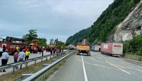 Artvin’in Kemalpaşa ilçesinde, heyelan nedeniyle kaya kütlelerinin tırların üzerine düşmesi sonucu ilk belirlemelere göre 1 kişi öldü, 2 kişi yaralandı.