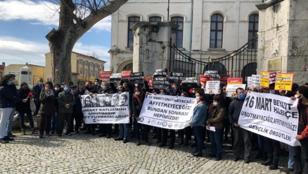 “16 Mart katliamını unutmadık unutmayacağız”, “16 Mart Beyazıt Halepçe unutturmayacağız affetmeyeceğiz” pankartlarının açıldığı açıklamada “16 Mart’ı affetmek yok” ve “Beyazıt faşizme mezar olacak” dövizleri taşındı.